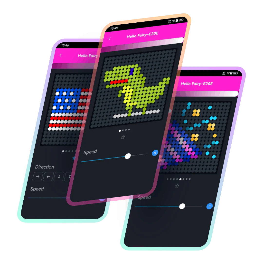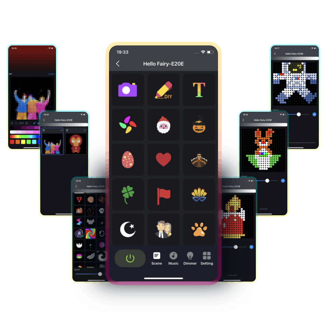 ![]() | Twinkling effect and pixel art Pre-set with various fun twinkling effects, the perfect fusion of pixel art and LED lights brings a unique visual experience. There is always a effect that you will like, suitable not only for decorating courtyards, rooms, but also parties… |