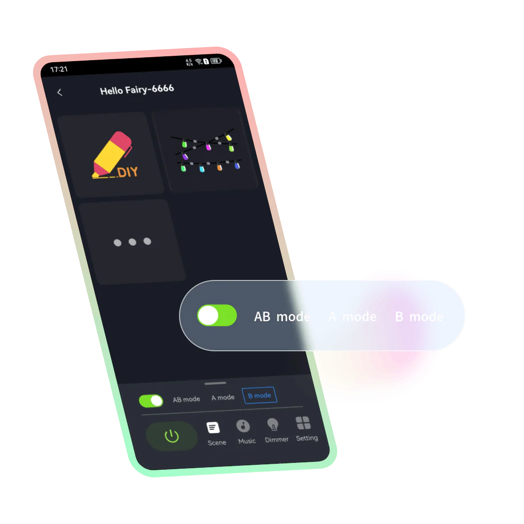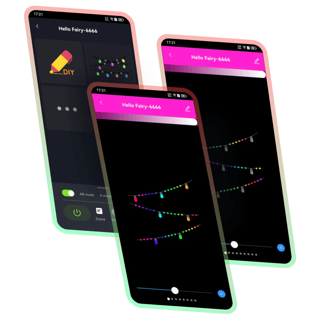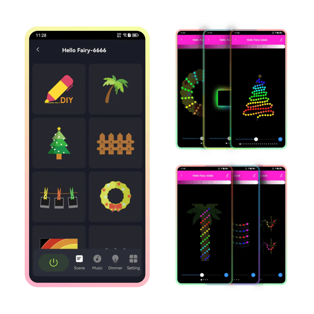 ![]() | DIY Easily set up corresponding colors for each bulb with built-in multiple DIY modes that meet the needs of different scenarios. Meanwhile, it allows users to fully unleash their creativity and imagination, making the decoration of light strings even more personalized and distinctive, presenting unique lighting effects. |