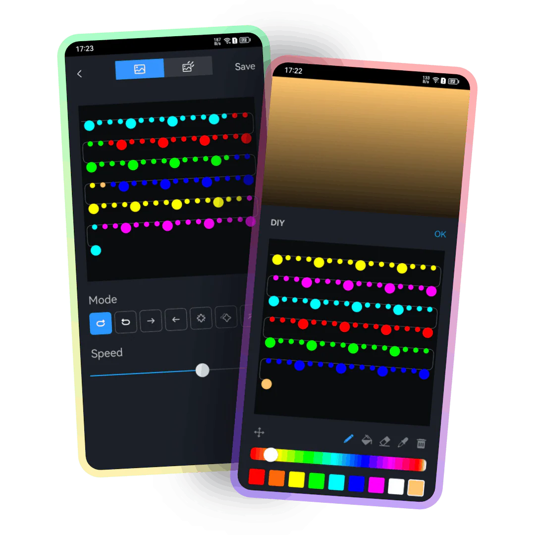 DIY Different combination modes support independent DIY settings, with multiple modes available for selection, such as: loop marquee, marquee, flashing, breathing, or creating more frames to bring more changes.
