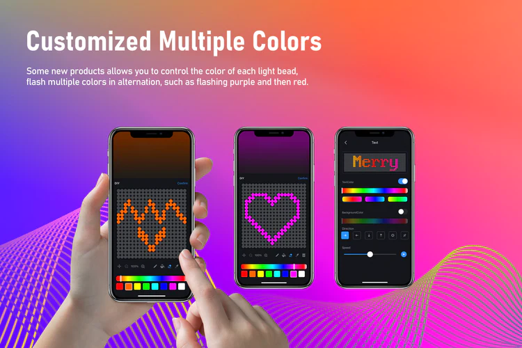 Some new products allows you to control the color of each light bead, flash multiple colors in alternation, such as flashing purple and then red.