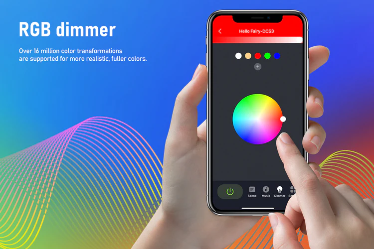 RGB Dimming In theory, it supports 16 million colors for adjustment. Lightly press and drag the color picker in the color wheel with your finger, and the light can be switched to the desired color.
