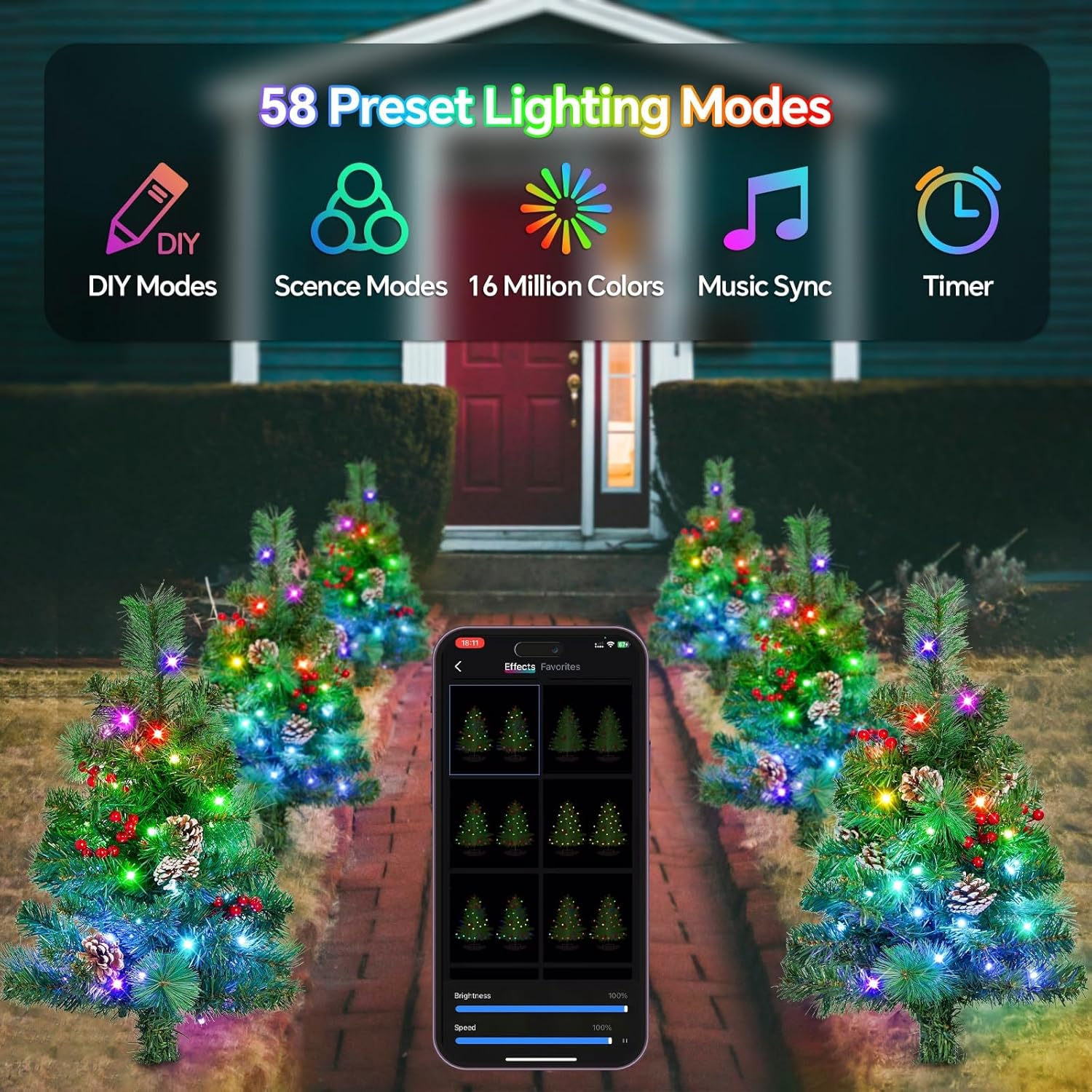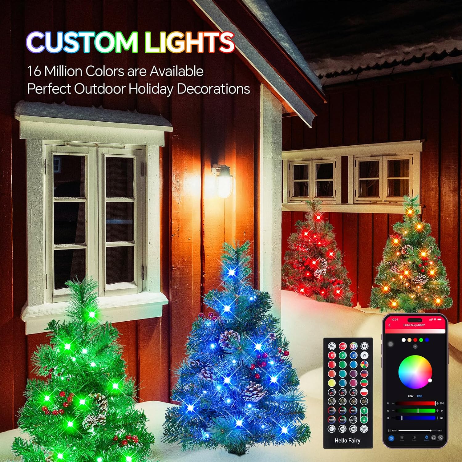 - DIY Lights Patterns: “Hello Fairy” APP choose DIY mode to customize the color, brightness, direction and speed of the each LED bead. With Timer and Countdown Function, you can easily adjust the Christmas tree lights to suit any occasion