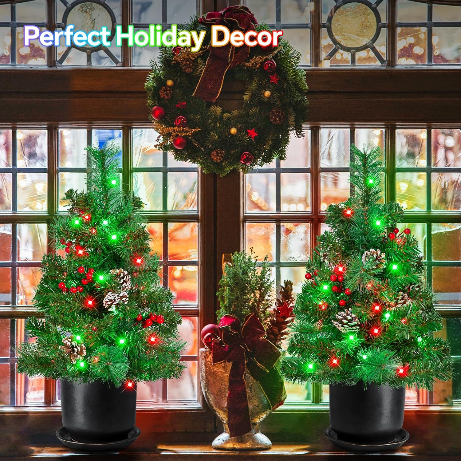- Indispensable Decoration: 2.5ft RGB lighted pine Christmas tree to decorate your pathway, garden, patio, yard, balcony, porch, with its vivid colors and dynamic light show, add a relaxing and romantic atmosphere for Christmas and New Year
