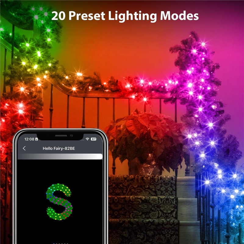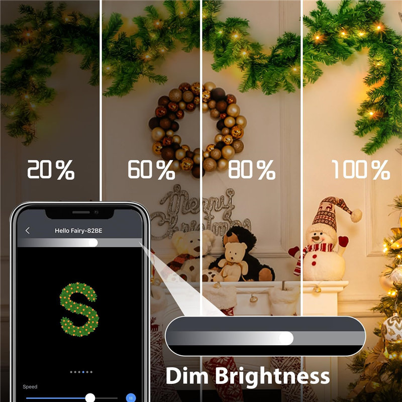 ● Preset Scene Mode – Connect the smart christmas tree garland with the Hello Fairy App, choose different preset christmas garland lighting mode. Brand new christmas garland with lights, creates a attractive festive atmosphere, surely lights up your holiday.