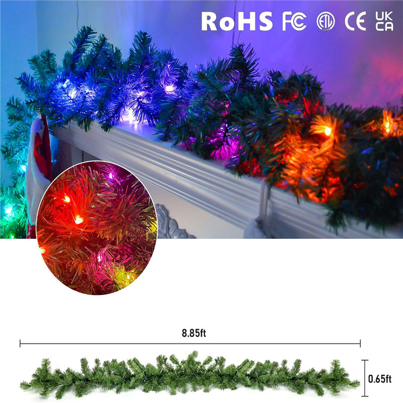Custom Display Lighted Christmas Garland, Color Changing App Control Pre-Lit Artificial Christmas Garland, Dimmable Timer Music Sync for Xmas Tree Party Xmas Decorations