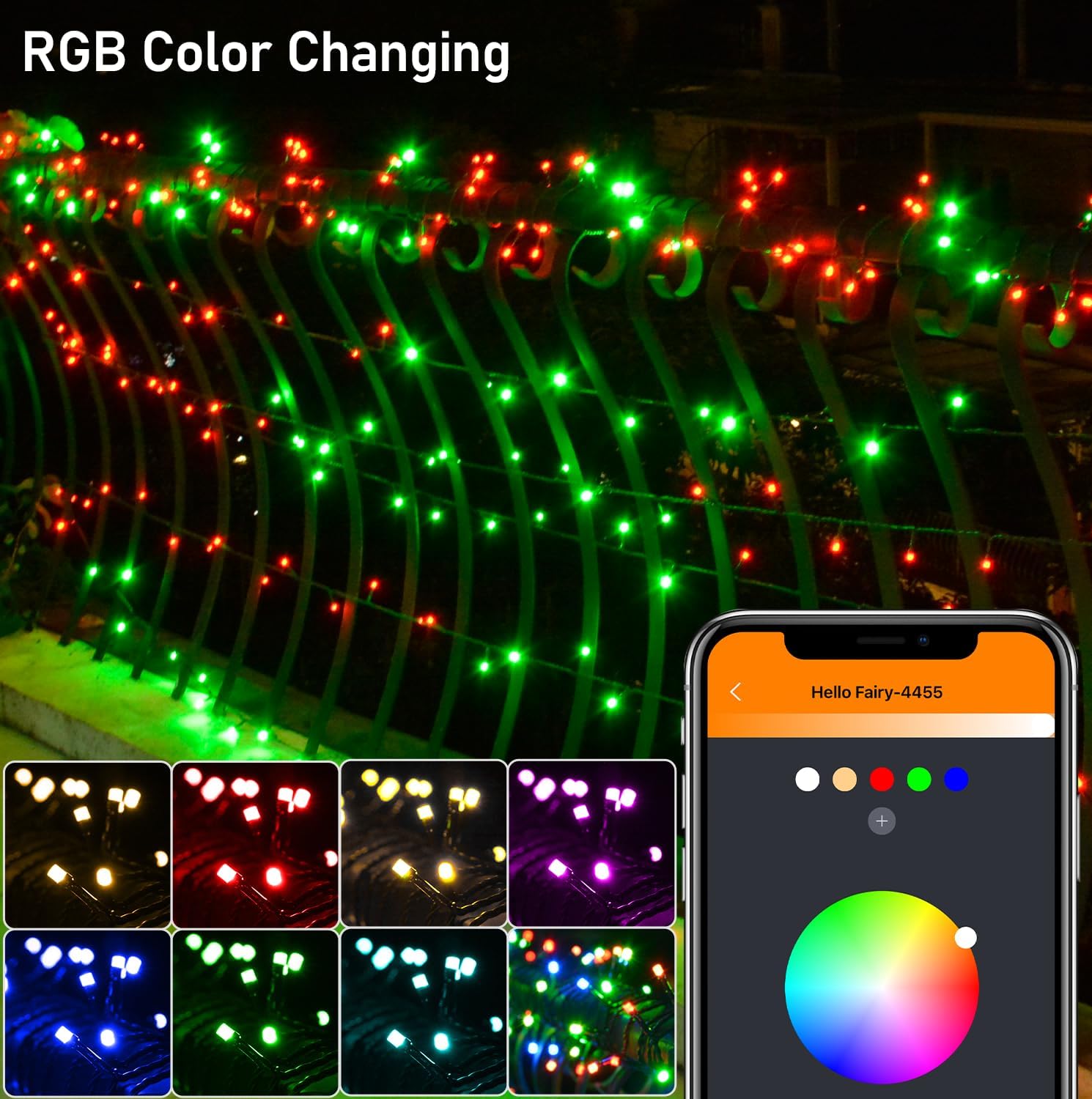 Christmas Tree Lights, Bluetooth Color Changing Christmas Outdoor String Lights, 23 Preset Modes, Dimmable Schedule IP44 Waterproof for Holiday Xmas Decor
