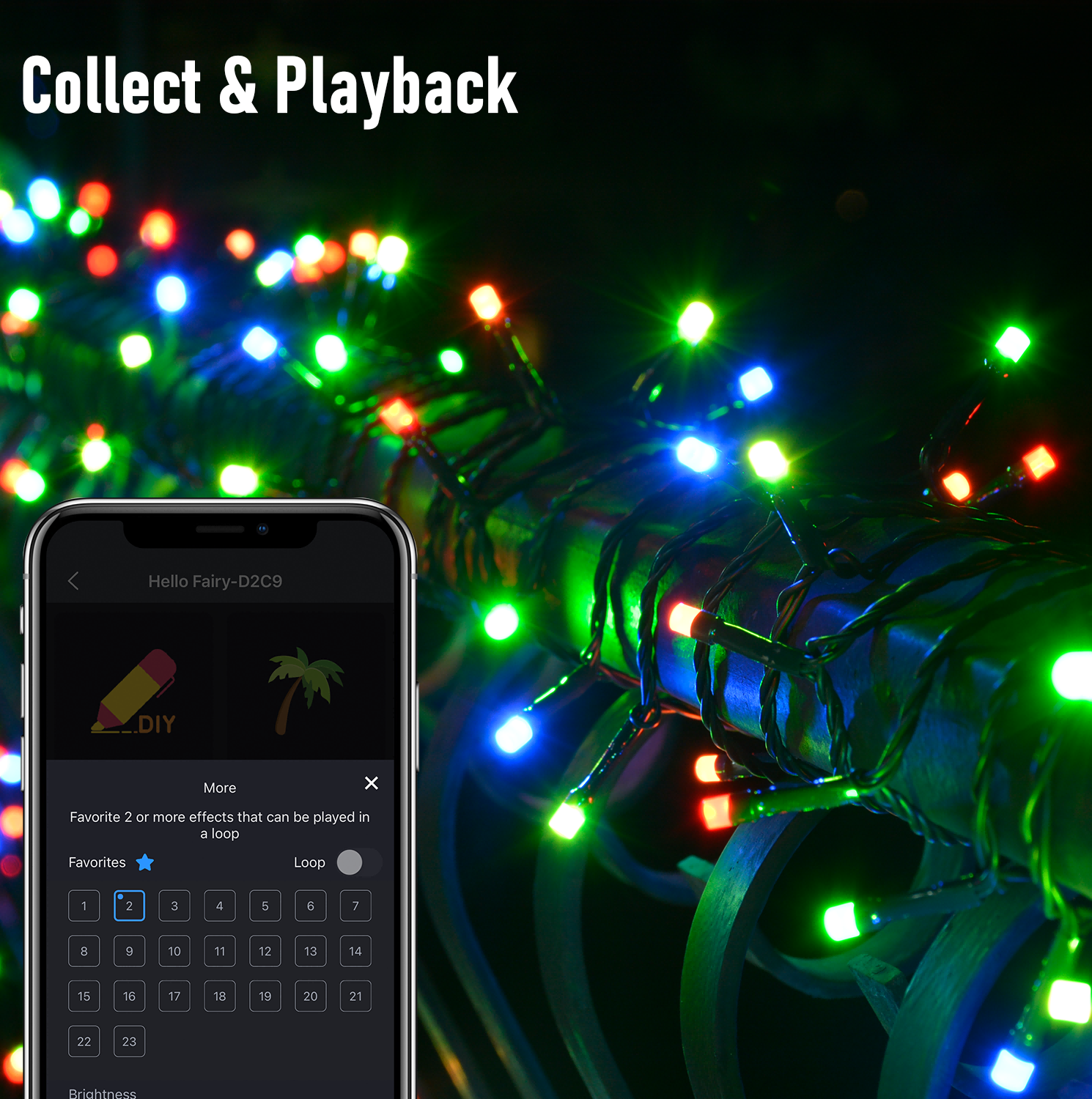 ● Collect&Playback Function: You can save your favorite modes and set them to loop, while adjusting the brightness and speed for different occasions, creating a better decorating ambiance for you and your family.