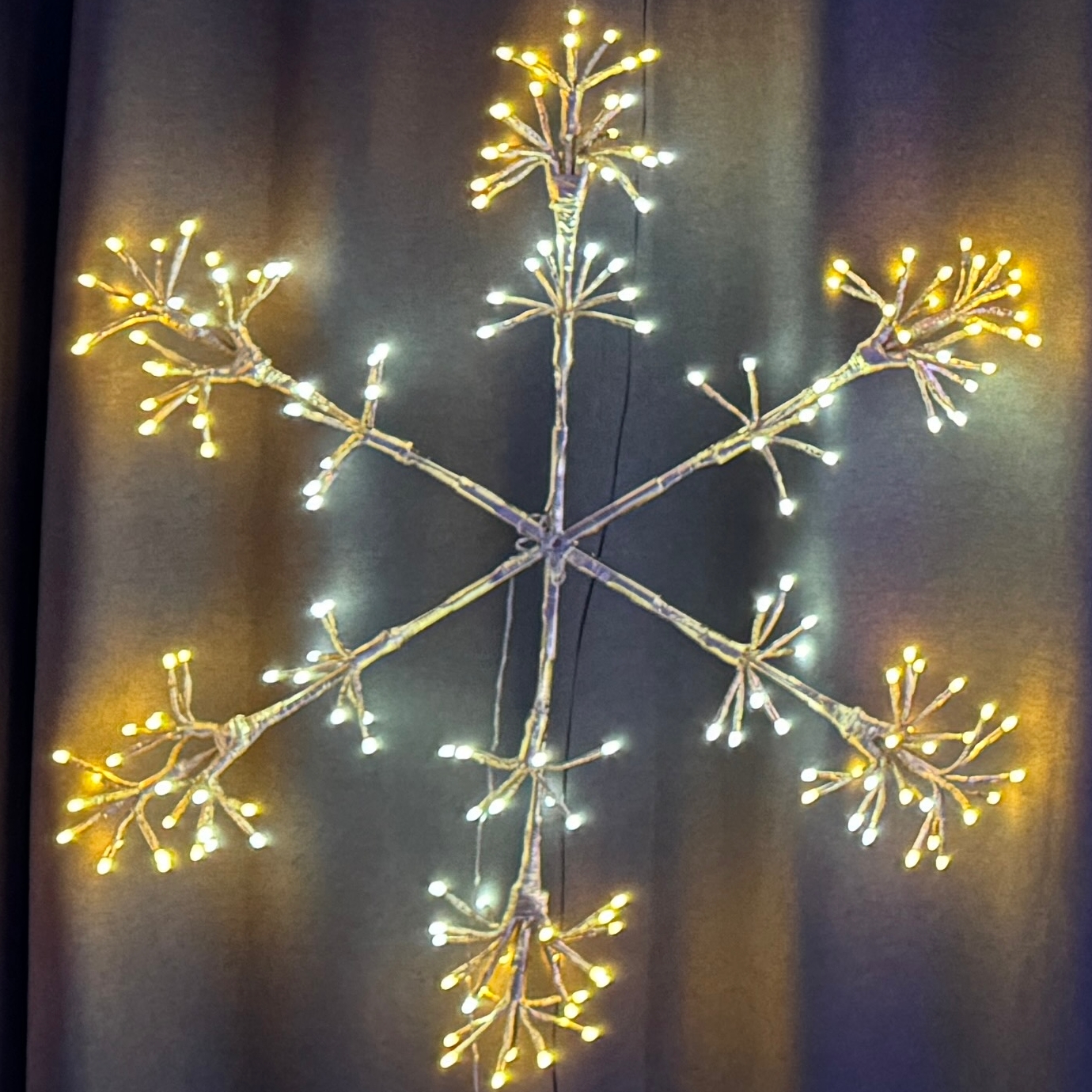 Snowflake Light, Twinkle and Warm White Lights, Silver Finish, Plug in for Home Garden Decoration, Winter, Wedding, Birthday, Christmas, Holiday, Party Decoration