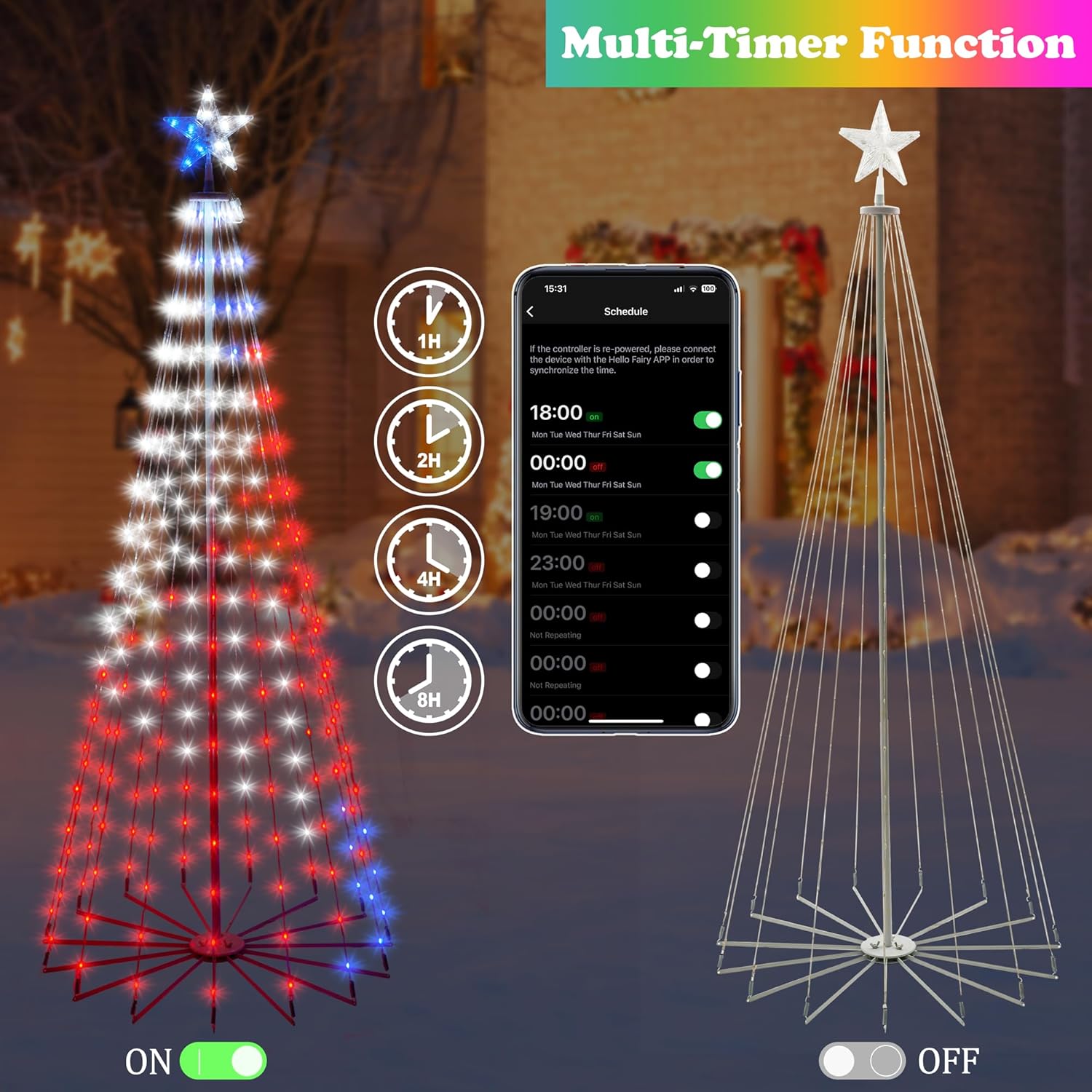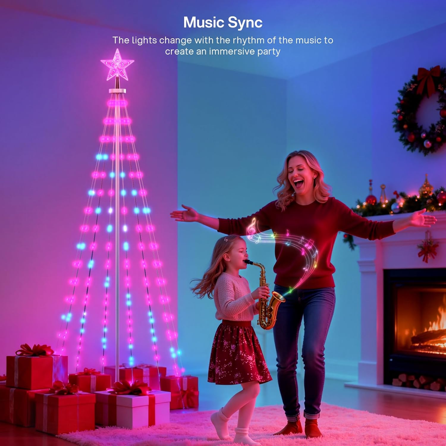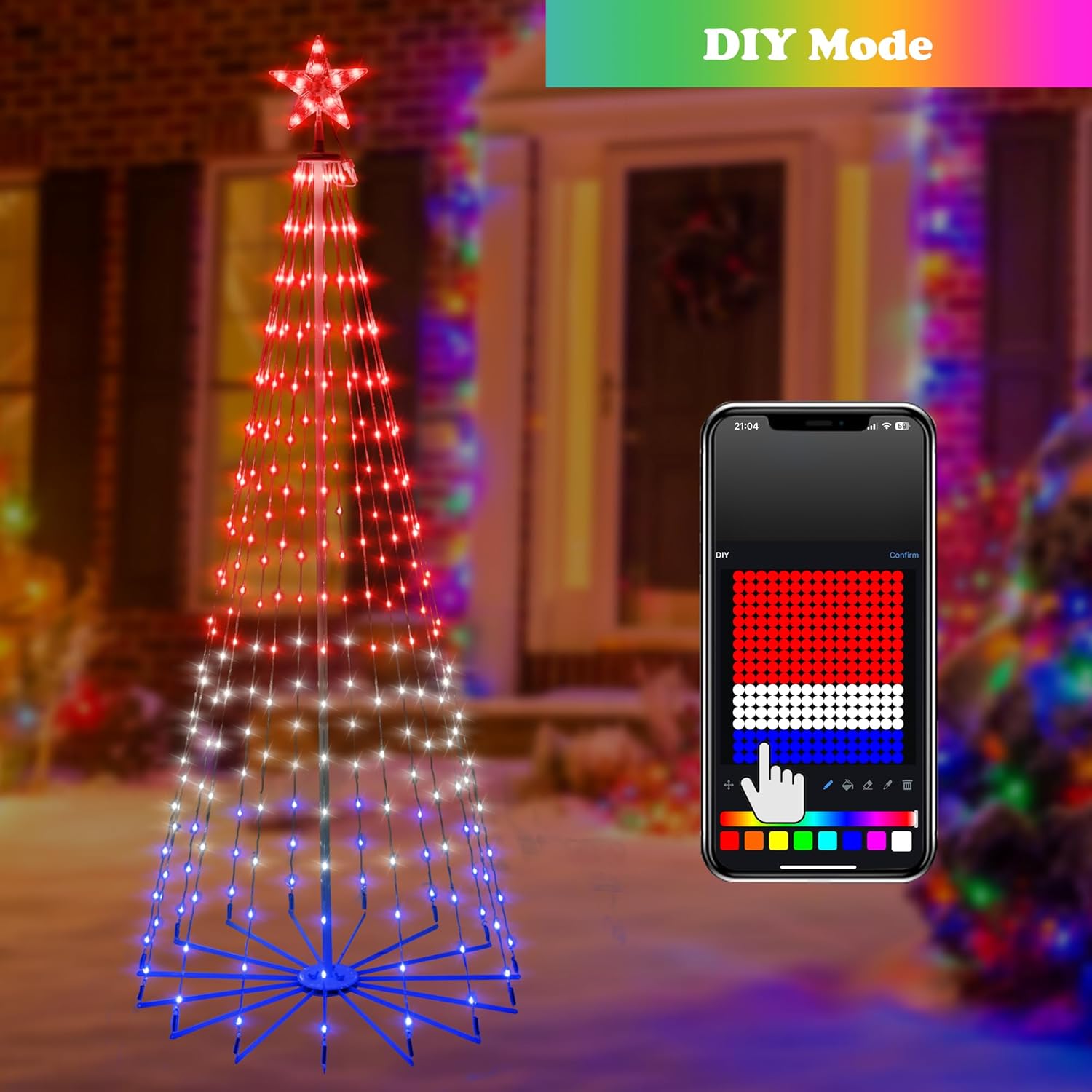 Christmas Cone Tree Lights, LEDs RGBIC Christmas Tree Lights with Smart App Control, IP67 Waterproof Outdoor String Lights for Xmas Decorations, 100+ Scene Modes, DIY, Music Sync